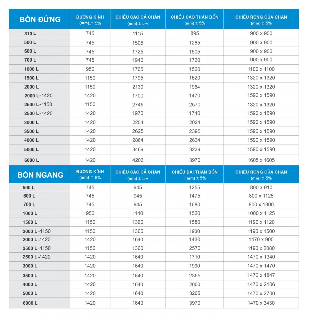 Bồn Nước Inox Toàn Mỹ có nhiều dung tích và kích thước cho khách hàng chọn lựa từ 300l đến 30.000 lít